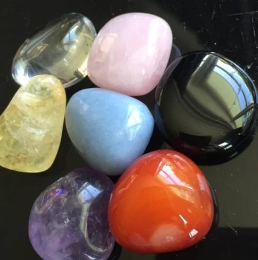 Rose quartz, carnelian, and black obsidian