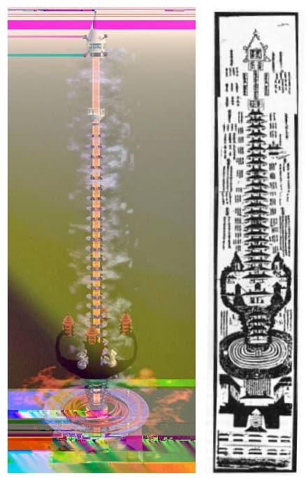One can see that the Meru drawing is an axis that resembles an antenna (or a microwave weapon from Star Wars). There’s a reason for this. One well-known scholar of Buddhism quoted by Victoria LePage, Lama Anagarika Govinda, says Meru is,
